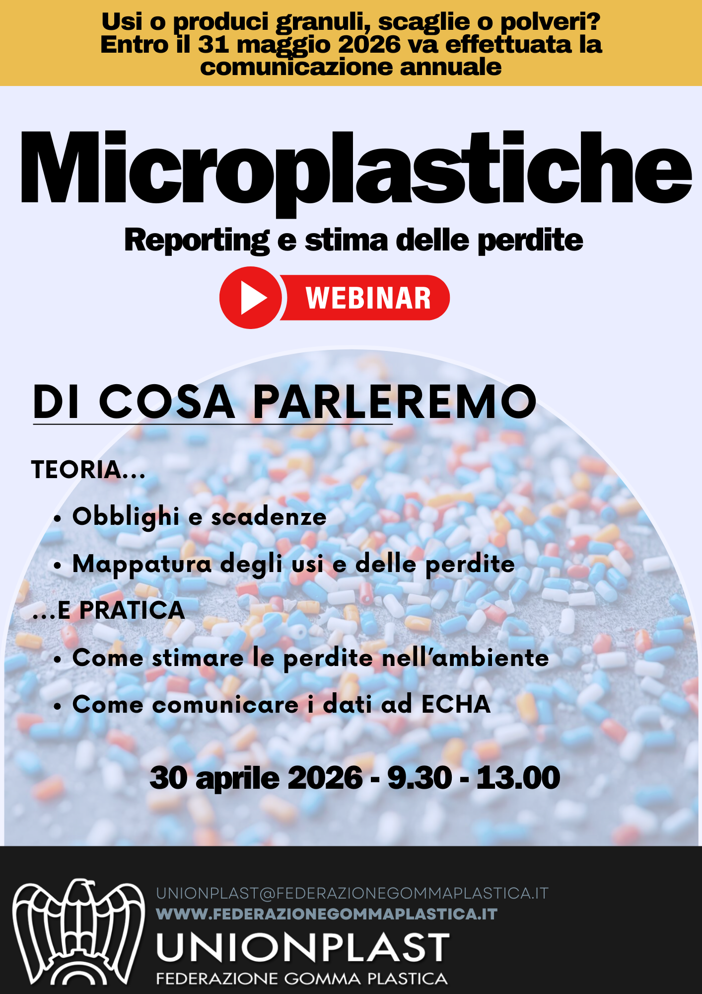 Per supportare le aziende nell’inquadramento di questi obblighi e fornire strumenti pratici per il loro adempimento, Unionplast organizza un webinar di formazione dedicato a microplastiche, reporting e stima delle perdite.
